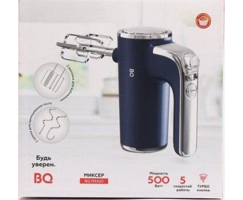 Миксер ручной, мощность 500 Ватт, 5 скоростных режимов, режим ТУРБО, скорость вращения до 1400 об/мин, защита от перегрузки, 2 венчика для взбивания, 2 крюка для замешивания теста, насадки из нержавеющей стали AISI 304, кнопка извлечения насадок, эргономичный дизайн, длина сетевого шнура 1 м, электропитание 220-240 В, 50 Гц