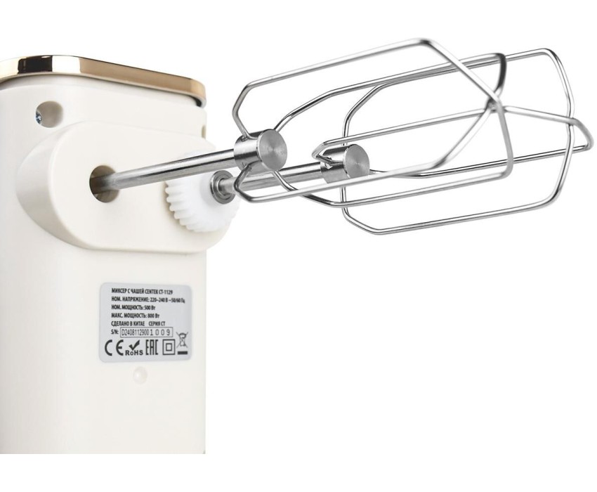 Миксер с чашей Centek CT-1129 (бежевый/золотой хром) 800Вт, 6 скоростей + турбо, 2 чаши 3.5/3,6л