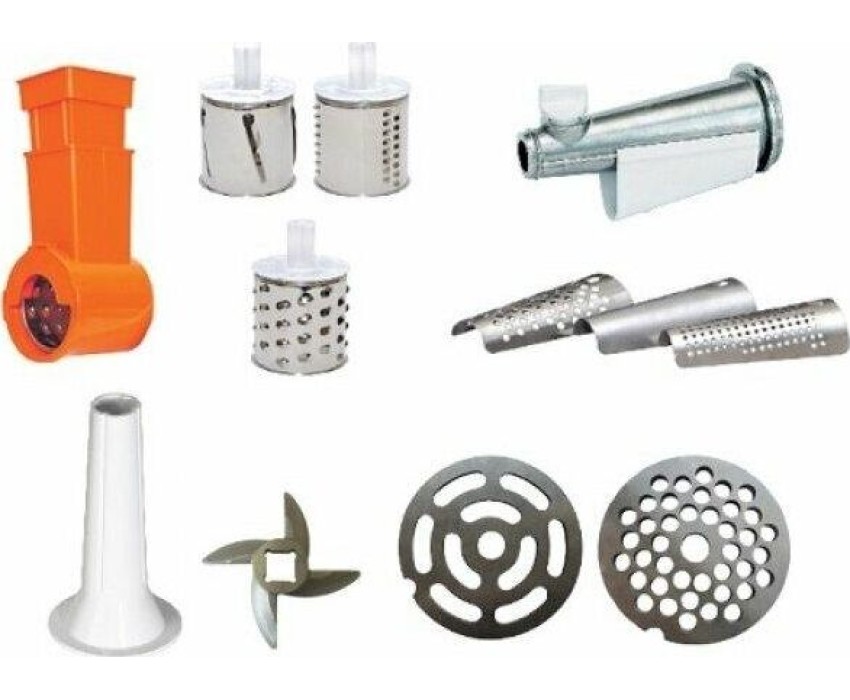 диск для фарша, насадка для кеббе, насадка для приготовления колбас, насадка для шинковки, насадка-терка, соковыжималка
