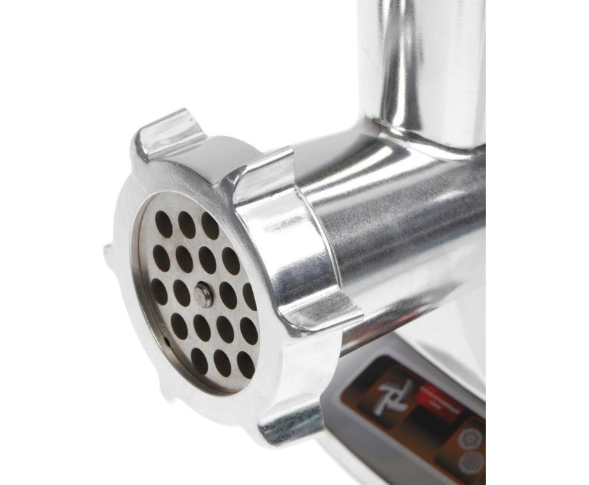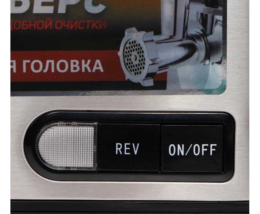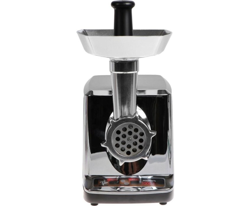 Мощность: 2000 Вт Функция реверс Материал корпуса: нержавеющая сталь с хромированной вставкой Прорезиненные ножки Материал лотка: металл Толкатель Материал шнека: металл Материал ножа: нержавеющая сталь Диски для измельчения: 5 мм и 8 мм, материал: металл Длина сетевого кабеля: 1,2 м Отключение при перегреве
