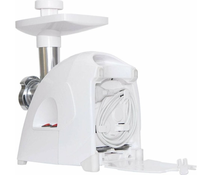 Габаритные размеры (ШxВxГ) 25,5/16,9/ 24,2 см * Производительность 2 кг/мин * Реверс Есть * Мощность 1700 Вт * Вес 4,7 кг * Цвет Белый * Двойная защита от перегрузки; Функция «реверс» для предотвращения наматывания жилок на шнек; Отсек в корпусе для шнура питания, хранения ножа и насадок; 3 вида решеток для получения фарша разной консистенции - с диаметром отверстий 4,9 мм и 7 мм, а также овальными отверстиями; Экран для защиты от брызг, который поможет сохранить кухню в чистоте; Высокое размещение шнековой камеры; Возможность вертикального хранения для экономии пространства на кухне; Ручка для переноски; Устойчивые нескользящие ножки для фиксации мясорубки на поверхности стола;