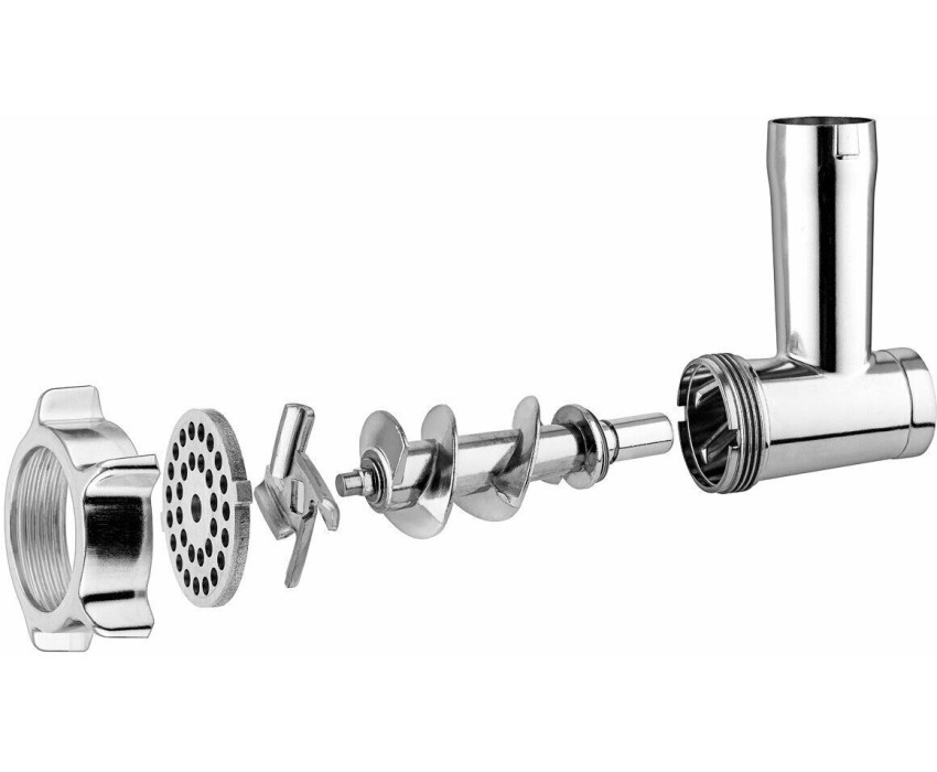 Максимальная мощность 2000 Вт Производительность 2 кг/мин Дисплей с индикацией режимов работы Функция «Реверс» 3 диска из нержавеющей стали (3 мм, 5 мм и 7 мм) Насадка для приготовления колбас Насадка «Кеббе» Насадка для драников Насадка для терки Насадка для шинковки Cъемный лоток из стали Толкатель для продуктов Прорезиненные противоскользящие ножки Защита от перегрева Максимальный уровень шума 75 дБ Электропитание 220-240 В, 50 Гц