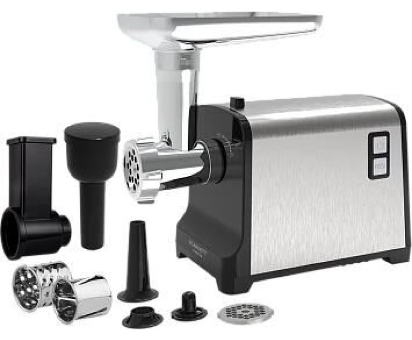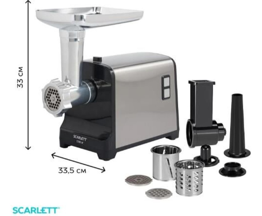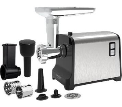 С овощерезками Мощность, Вт: 2200 Производительность кг/мин: 2.5 Функция реверс: Да Перфорированные диски для мяса, размер отверстий мм: 5 и 7 Защита двигателя от перегрузки: Да Нож из нержавеющей стали: Да Насадка кеббе: Да Насадка для приготовления домашних сосисок: Да Насадки для терки и шинковки овощей, шт.: 2 Защита от перегрева: Да Материал лотка для подачи мяса: Металл Количество решеток: 2 Длина электрошнура, м: 1 Особенности модели: Толкатель с хранением насадок Цвет: Сталь