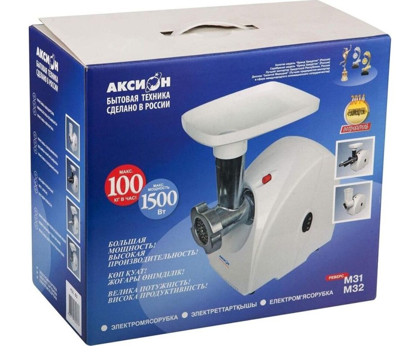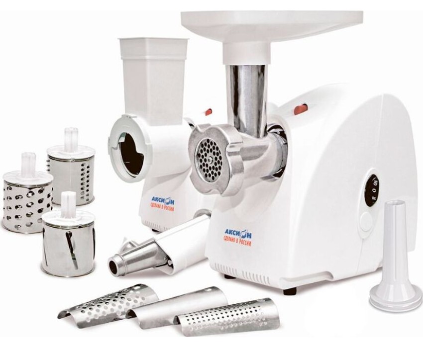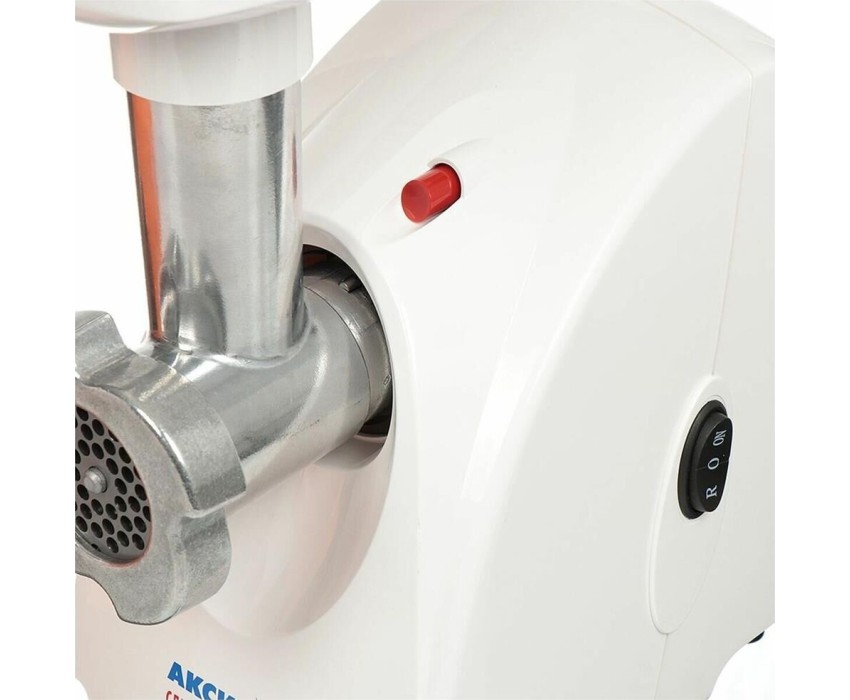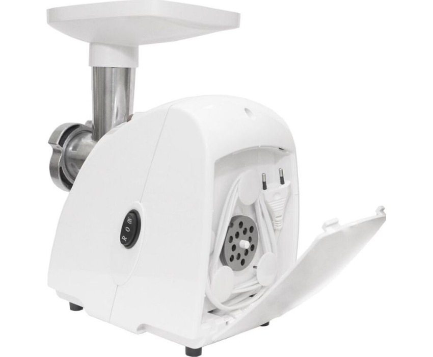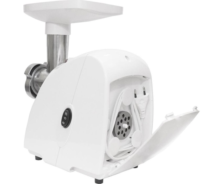 Максимальная мощность 1500 Вт, номинальная мощность 230 Вт, производительность — 1,7 кг/мин Защита двигателя от перегрузки; 3 вида решеток для получения фарша разной консистенции - с диаметром отверстий 4,9 мм и 7 мм, а также овальными отверстиями; Удобное хранение ножей и решеток; Высокое размещение шнековой камеры; Функция «реверс» для предотвращения наматывания жилок на шнек; Устойчивые нескользящие ножки для фиксации мясорубки на поверхности стола;