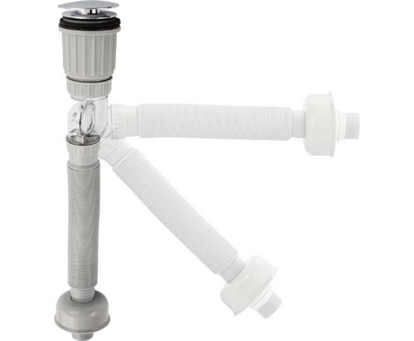 Сифон с гофрой для раковин из высокопрочного пластика АБС предназначена для слива воды из мойки или раковины. Сифон комплектуется металлическим выпуском "клик-клак" с сеткой. В центре системы установлен чувствительный лепесток, который даже при незначительном попадании воды срабатывает на слив, а при отсутствии воды плотно перекрывает потоки запахов из канализации. Он герметично соединяет раковину с канализационной сетью. Гофрированный сифон блокирует неприятные запахи из канализации. В трубе всегда есть небольшое количество воды, которая и предотвращает появление неприятных запахов. Регулируемая длина гофры позволяет установить раковину на нужном расстоянии от канализации. Качественный водопровод — залог чистоты в ванной комнате. Габаритные размеры: диаметр присоединительного отверстия 32 - 50 мм, диаметр стока 60 мм, длина 430 мм. Вес - 0.5 кг, объём - 0.0035 м3.