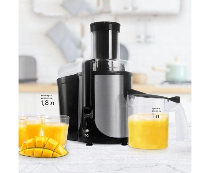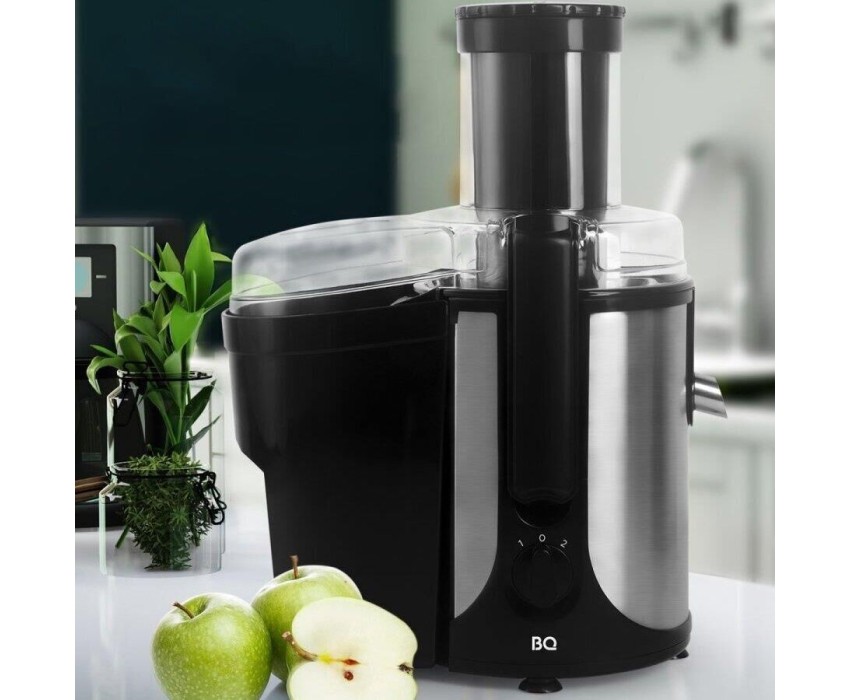 BQ J1003 BLACK-STEEL Мощность 1800 Вт Технология Double Protect Скорость работы до 18000 об/мин Широкое загрузочное отверстие 85 мм 2 скорости: для мягких ягод и твердых плодов Фильтр из нержавеющей стали Мытье в посудомоечной машине