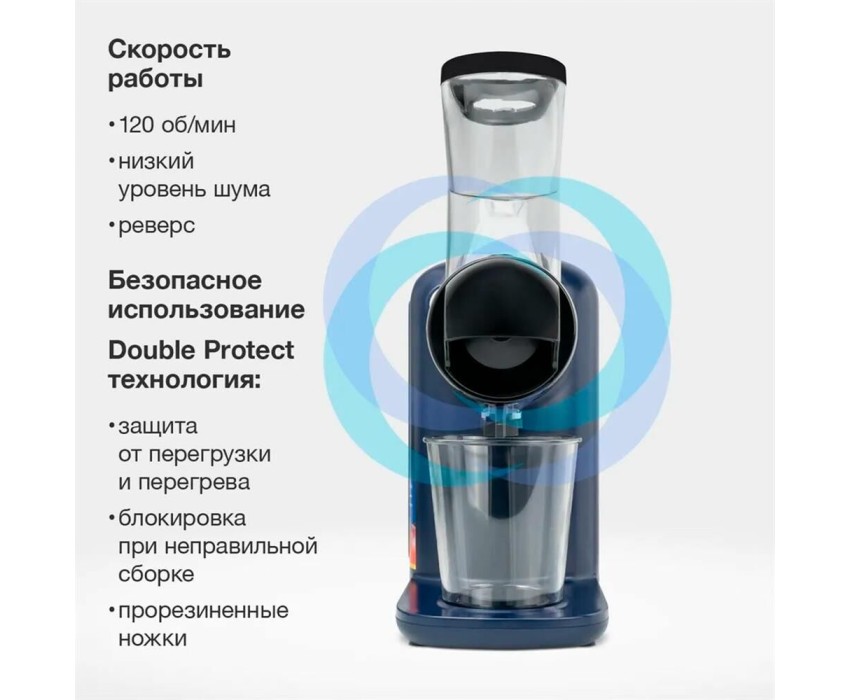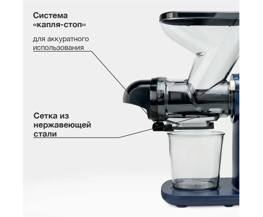 система «капля-стоп», реверс, защита от перегрузки, автоматический выброс мякоти