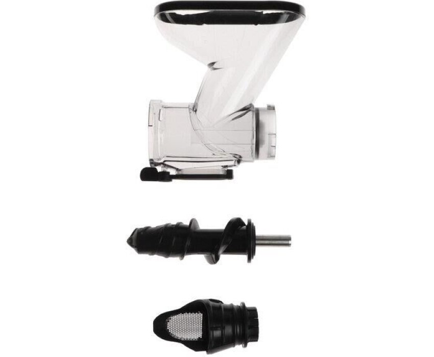 Шнековая соковыжималка, Мощность:100Вт /Объем кувшина для сока:280 мл /Объем резервуара для жмыха: 360мл / Система >/ Скорость работы до 120 об/мин /Функция реверса / Автоматический выброс мякоти / Фильтр из нержавеющей стали/ Двойная защита: от перегрева, от перегрузки/ Блокировка при неправильной сборке/ Нескользящие ножки/ Низкий уровен шума/Длина шнура: 1м.