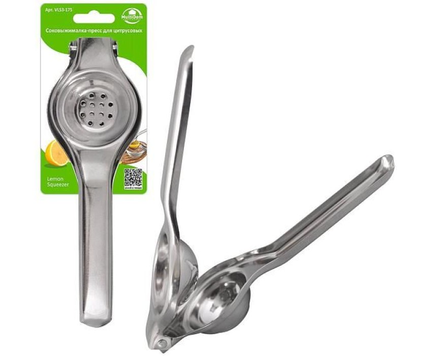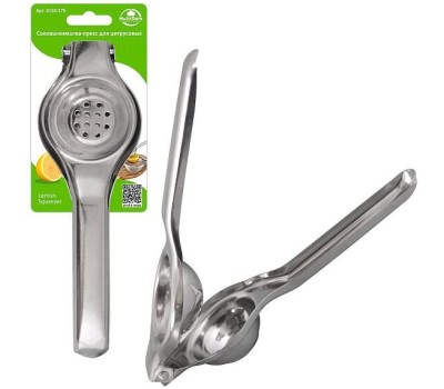 Очень много блюд готовят с соком лимона или лайма, его добавляют в мясо, рыбу, в салаты и заправки. Свежий цитрусовый сок прекрасно сочетается с чаем, добавляется в прохладительные напитки и коктейли. Чтобы не выжимать цитрусы руками, используйте удобную соковыжималку. Как пользоваться: разрежьте фрукт пополам, вложите внутрь соковыжималки срезом вверх, закройте соковыжималку, при этом сдавливая обе ручки, до получения сока. Сок через отверстия будет стекать в заранее подготовленную емкость. Изготовлено: коррозионностойкая (нержавеющая) сталь. Длина 20,5 см, диаметр 6,5см.