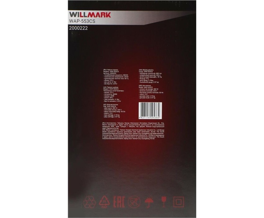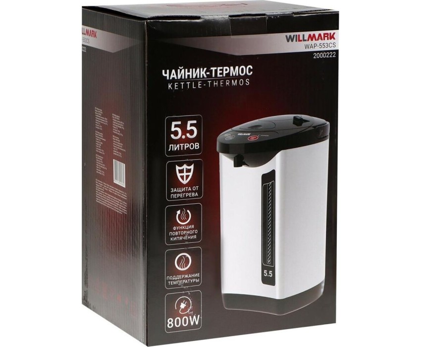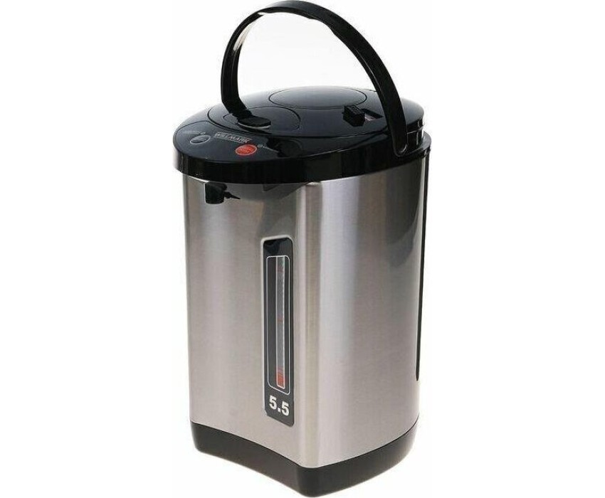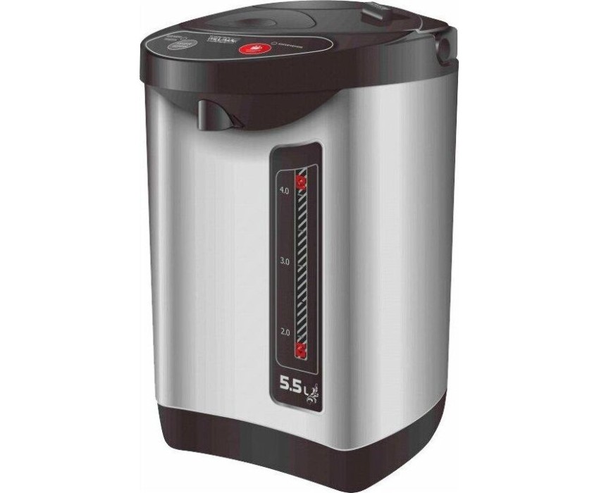 Мощность (Вт): 800 Вт; Нагревательный элемент: скрытый; Напряжение (В): 220-240; Объем (л): 5,5; Поворот базы на 360 градусов.Повторное кипячение.Способ подачи воды: воздушная помпа, электронасос, с помощью посуды; Страна производитель: Китай; Функция поддержания температуры.Цвет: серый металлик.Вес брутто (кг): 2,57; Вес нетто (кг): 2,19; Защита от перегрева.Материал бака: нержавеющая сталь; Материал корпуса: нержавеющая сталь, пластик;