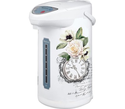 Термопот Объем: 5 л Мощность: 1100 Вт Мощность в режиме поддержания температуры: 35 Вт 3 режима дозировки воды: ручной/ автоматический/ электрический Металлический корпус Электрическая помпа Внутренняя емкость из нержавеющей стали Поворот корпуса на 360° Световые индикаторы Шкала уровня воды Съемная крышка Съемный сетевой шнур Режим поддержания температуры воды Функции повторного кипячения и дехлорирования воды Двойная защита от перегрева Сеть: 220-240В, 50гц