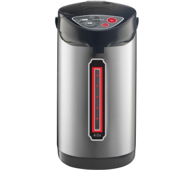 Максимальный объем: 4 л Мощность: 850 Вт Автоматическое поддержание температуры Мощность в режиме поддержания температуры: 30 Вт Автоматическая функция повторного кипячения Три способа подачи воды: автоматический, механический, касанием чашкой Внутренняя камера из нержавеющей стали Индикатор уровня воды Защита от перегрева и отсутствия воды