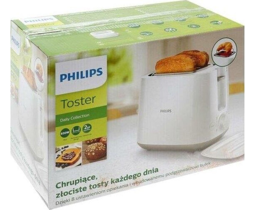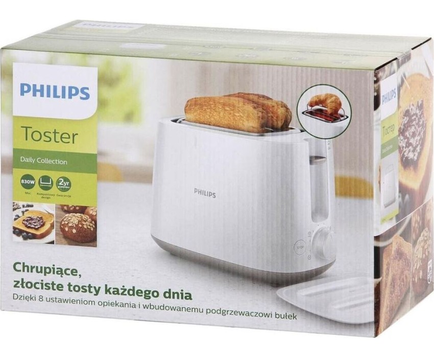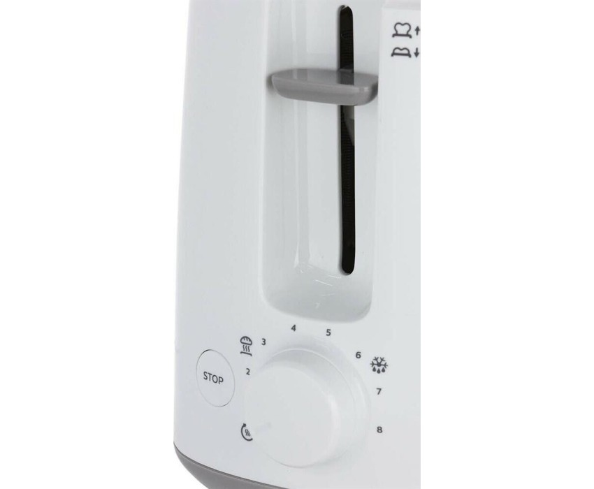 Мощность 760–900 Вт, Вес - 2.4 кг, Автоматическое отключение, Нескользящие ножки, Материал - Пластик, Цвет - Белый. Тип управления: Механическое. Нескользящие ножки: Да. Автоматическое отключение: Да. Различные режимы приготовления тостов: 8. Подставка для булочек: Да.