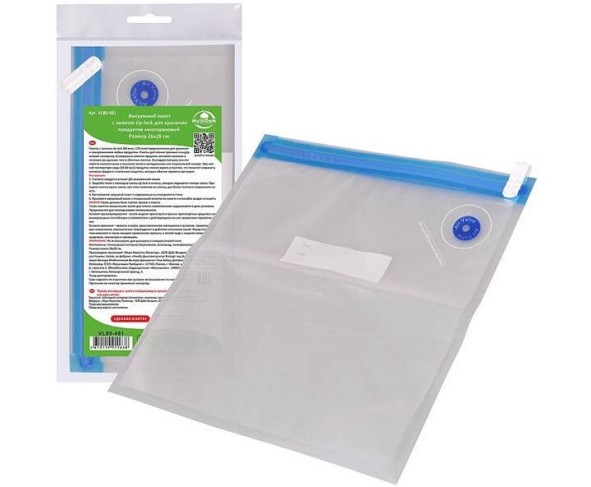 MULTIDOM Вакуумный пакет с замком zip-lock и защитным клапаном для хранения продуктов многоразов. 26х28см VL80-481