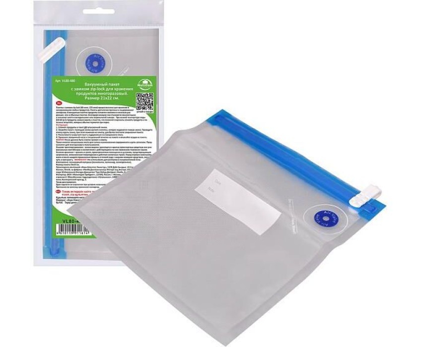 MULTIDOM Вакуумный пакет с замком zip-lock для хранения продуктов многоразовый. Размер 21х22см. VL80-480