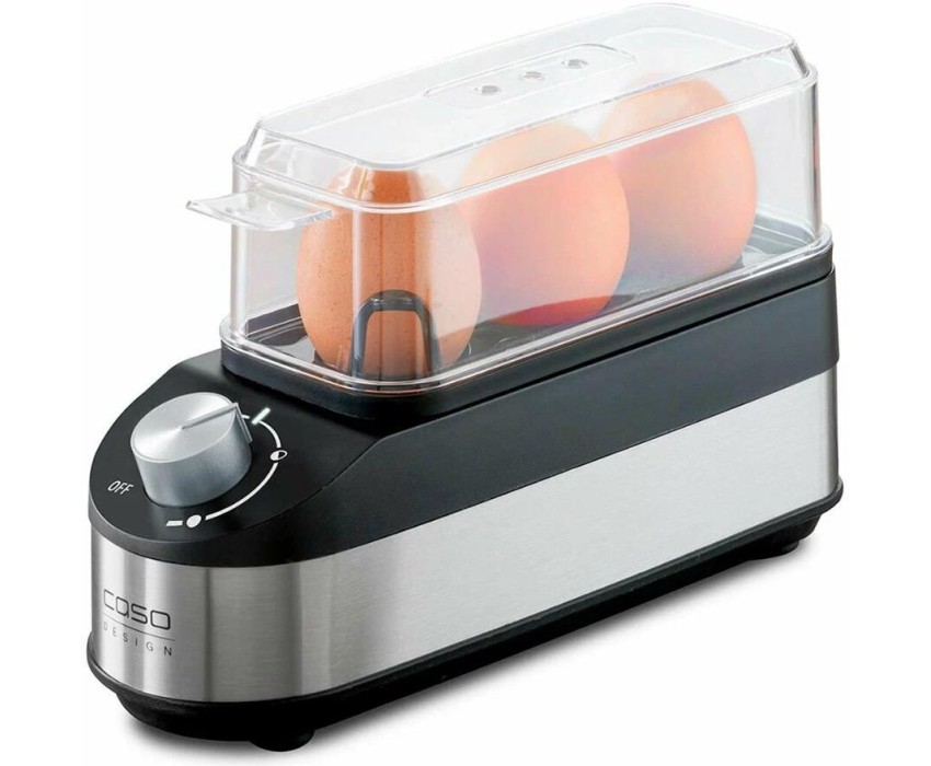 Яйцеварка CASO E3 Преимущества: - Варка до 3 яиц - Компактный корпус - Экономия времени и энергии по сравнению с варкой яиц на плите - Вставка на корпусе из высококачественной нержавеющей стали - Электронный контроль времени варки - Плавная регулировка степени варки (время варки до 15 мин) - Съемный держатель для яиц позволяет быстро охладить яйца под проточной водой - Съемная прозрачная крышка с ручкой - Индикатор (светодиод) режима работы - Автоматическое отключение со звуковым сигналом по окончании времени варки - Легко очищаемая нагревательная пластина Характеристики Материал корпуса: нержавеющая сталь Цвет корпуса: нержавеющая сталь Вместимость: 3 Регулировка степени варки: да Звуковой сигнал окончания программы: да Форма для приготовления без скорлупы: нет Мерный стакан с иглой для прокалывания: да Место хранения кабеля: да Габариты прибора (ШхВхГ): 75х135х215 Масса, нетто (кг): 0,5 Напряжение (В): 220-240 Мощность (Вт): 210 Комплектация: - яйцеварка - мерный стакан со встроенным устройством для прокалывания яиц
