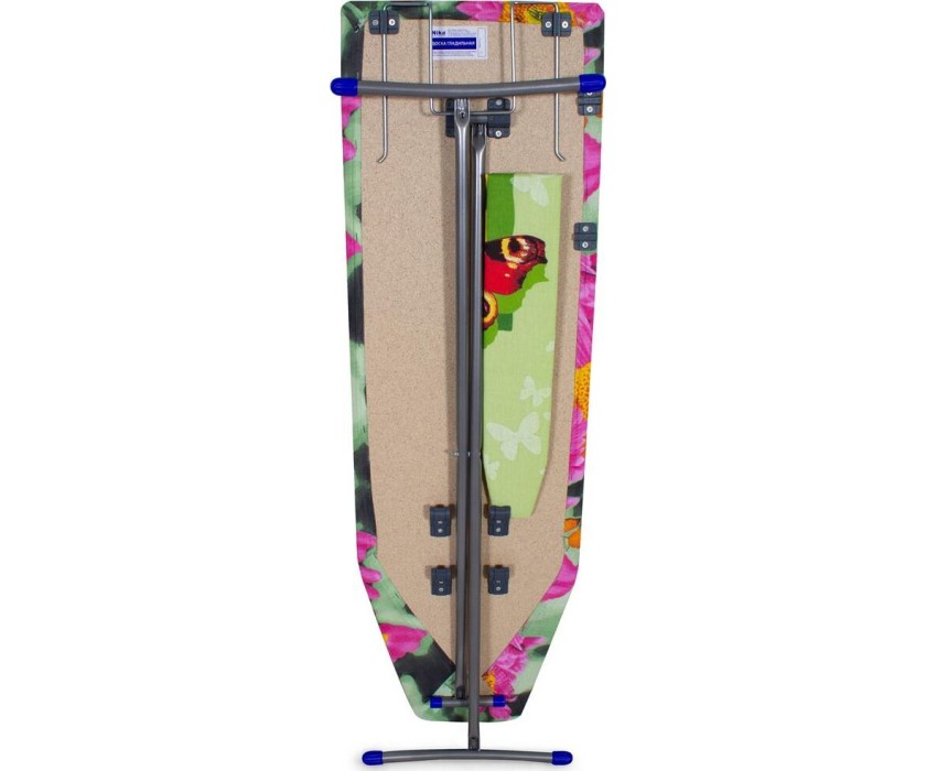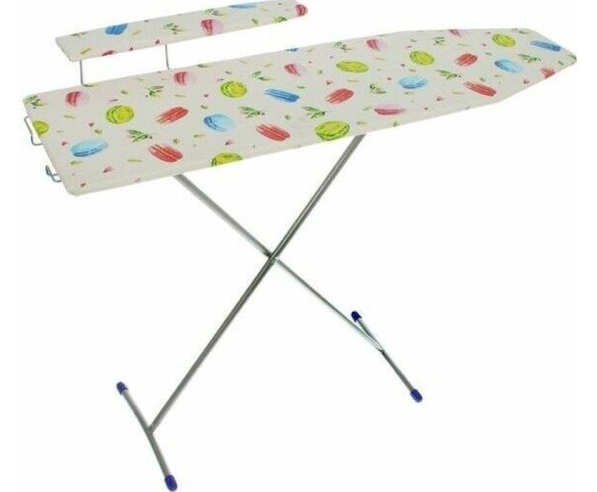 Гладильная поверхность -ДСП (1220х345мм), два положения высоты h-70, h-80см, выдвижная подставка под утюг, съемный подрукавник, материал чехла-хлопок, max нагрузка на глад.поверхность 10кг.,вес изделия- 4,52кг. Индивидуальная термоупаковка.