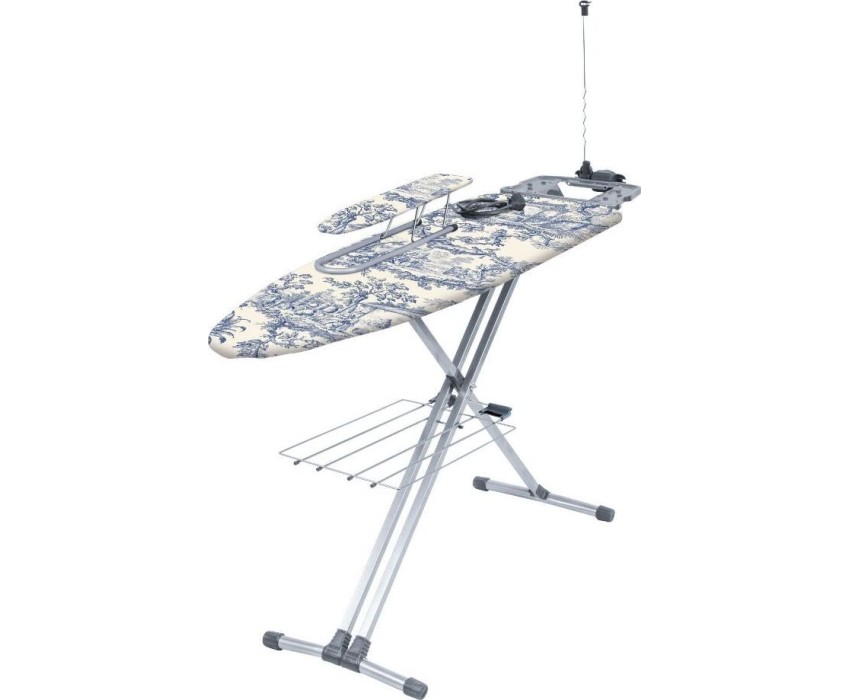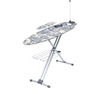 Размер гладильной поверхности 122х40см.Основа полотна металл.Автоматический многоуровневый регулятор высоты до 0,9 м.Двухпозиционная EURO подставка под утюг с термостойкими силиконовыми вставками, специально для утюгов с тефлоновым покрытием. Широкая гладильная поверхность позволяет гладить постельное белье и скатерти. Сертифицированный электросоединитель 2,2 м. Удобная полка для белья. Подвижный складной держатель шнура. Подрукавник переносной. Съемный чехол из качественных х/б.Масса, кг7,95.
