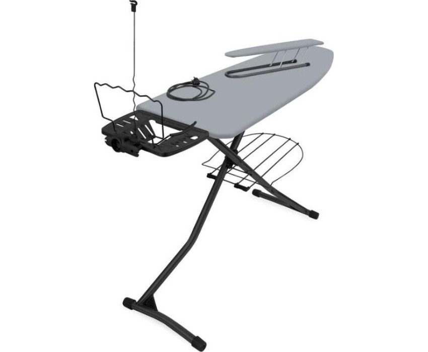 Гладильная доска с электросоединителем и подставкой под утюг, регулируемая по высоте. Удобная полка для белья и переносной подрукавник.