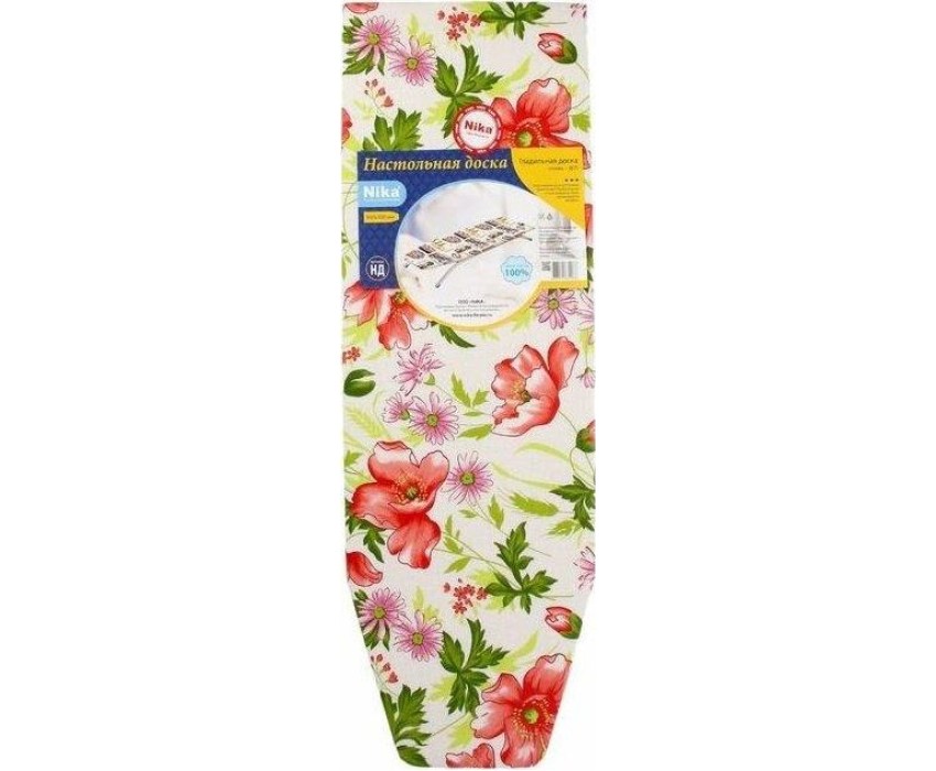 Настольная гладильная доска с рабочей поверхностью из ДСП и чехлом из хлопка.Размер изделия в разложенном виде (ДхШхВ) 85х29х9,5см.