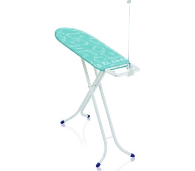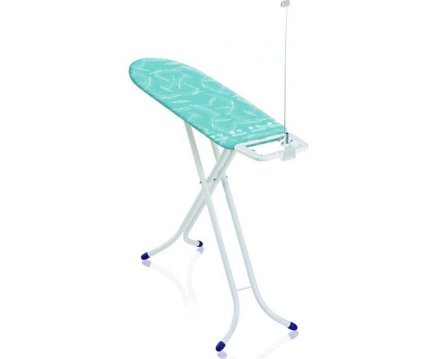 При достаточных для выполнения большинства повседневных операций габаритных параметрах вес доски не превышает 3,8 кг. Специфическая особенность изделия – гладильная поверхность из термопластика, изготовленная с использованием теплоотражающих технологий. Генерируемое стандартным или паровым утюгом тепло возвращается в процессе глаженья к обратной стороне белья, чем достигается эффект двусторонней глажки. Это не только облегчает труд, но и позволяет на 33% сократить время выполнения работ, а, следовательно, и энергозатраты. Опирается рабочая поверхность на высокопрочную раму, которая обладает превосходной устойчивостью даже на недостаточно ровных полах. Пользователь имеет возможность легко и быстро изменить высоту положения доски в пределах до 95 см (высота до нижней кромки гладильной поверхности). Конструктивные особенности гладильной доски AirBoard Compact S от Leifheit: Термостойкая пластиковая поверхность; Стационарная подставка для утюга или паровой станции;
