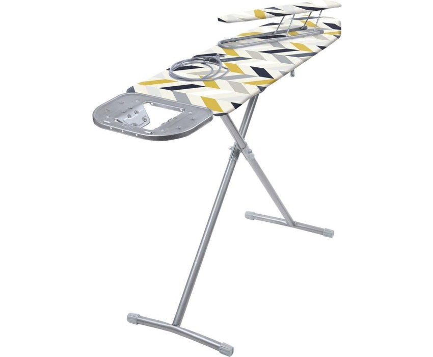 Надёжная металлическая поверхность с отверстиями для пара Съёмный чехол из хлопка Плавно регулируемая высота до 0,93 м Подставка под утюг с термоустойчивыми вставками Переносной подрукавник Электрический соединитель 1,6 м Устойчивые опоры с пластиковыми наконечниками для защиты напольного покрытия Фиксация в сложенном виде Максимальная нагрузка на гладильную поверхность - 25 кг