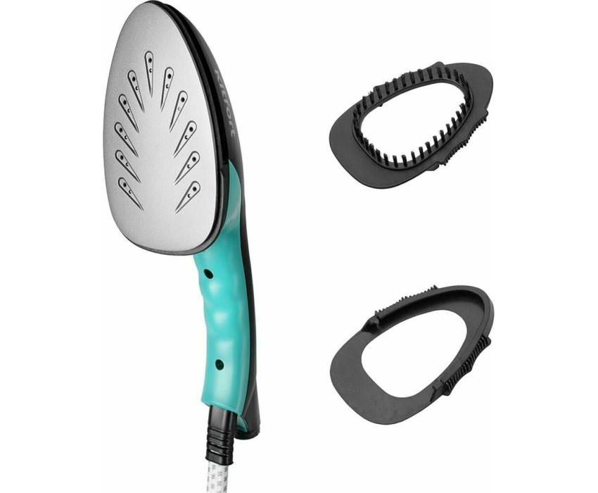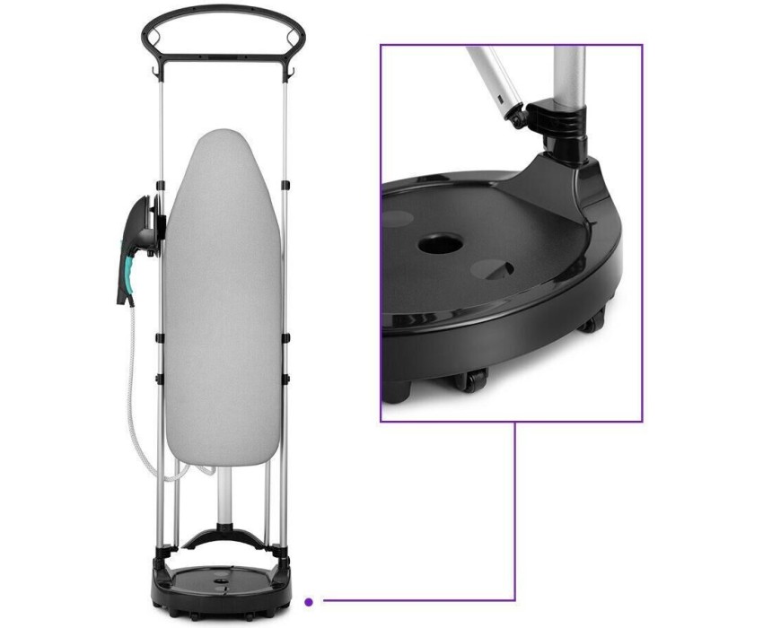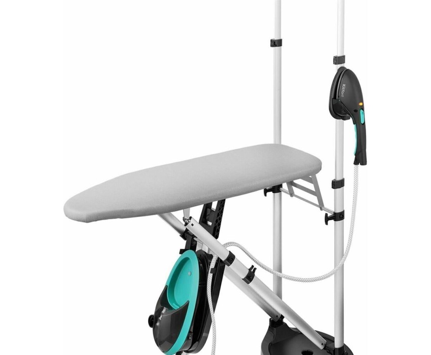 Мощность: 1200. Производительность подачи пара: 25. Емкость для воды: 800. Вес товара: 9.4. Тип: Гладильная система. Дорожный утюг: НЕТ. Длина шнура: 3.8. Материал корпуса: пластик. Особенности: В комплекте с гладильной системой идут 2 насадки. Ворсовая легко чистит загрязнённые поверхности, а также убирает шерсть домашних животных, волосы, ворс. Насадка для отпаривания подойдёт для деликатных тканей.. Габариты упаковки (ед) ДхШхВ: 1.29x0.42x0.231. Вес упаковки (ед): 13.1. Материал подошвы утюга: керамика. Тип управления: кнопочное. Время нагрева: 60. Длина шланга для подачи пара: 2. Количество насадок: 2. Управление со смартфона: Нет. Гарантия: 12 мес.. Цвет: черный и бирюзовый. Размеры (ШхВхГ): 179.5 х 108 х 46 см. Конструктивные особенности: желобок для пуговиц. Функции и режимы: вертикальное отпаривание, пароувлажнение, сухое глажение. Индикация: включения. Функции: вертикальное отпаривание, пароувлажнение, сухое глажение. Мощность: 1200 Вт. Подача пара: 25 г/мин. Емкость для воды: 800 мл. Длина шнура: 3.8 м