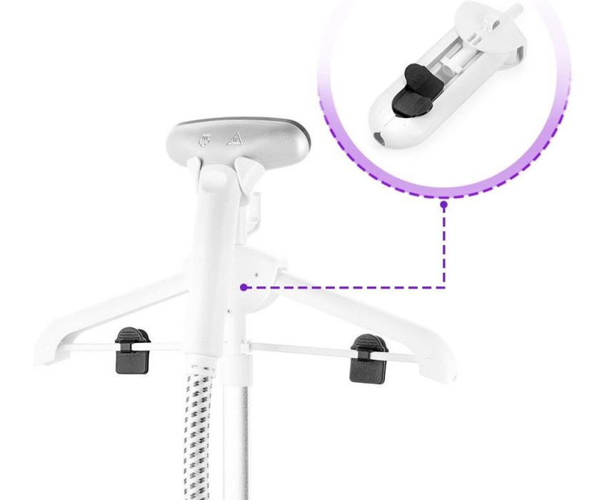 Мощность 2200 Вт Ёмкость резервуара 3 л Температура пара 98-100 °С Подача пара 45 г/мин Время нагрева 1-2 минуты Длина шнура 3 м Длина парового шланга 1,5 м Размер корпуса 280 х 360 х 330 мм Размер отпаривателя с выдвинутой телескопической стойкой и вешалкой 460 х 360 х 1750 мм