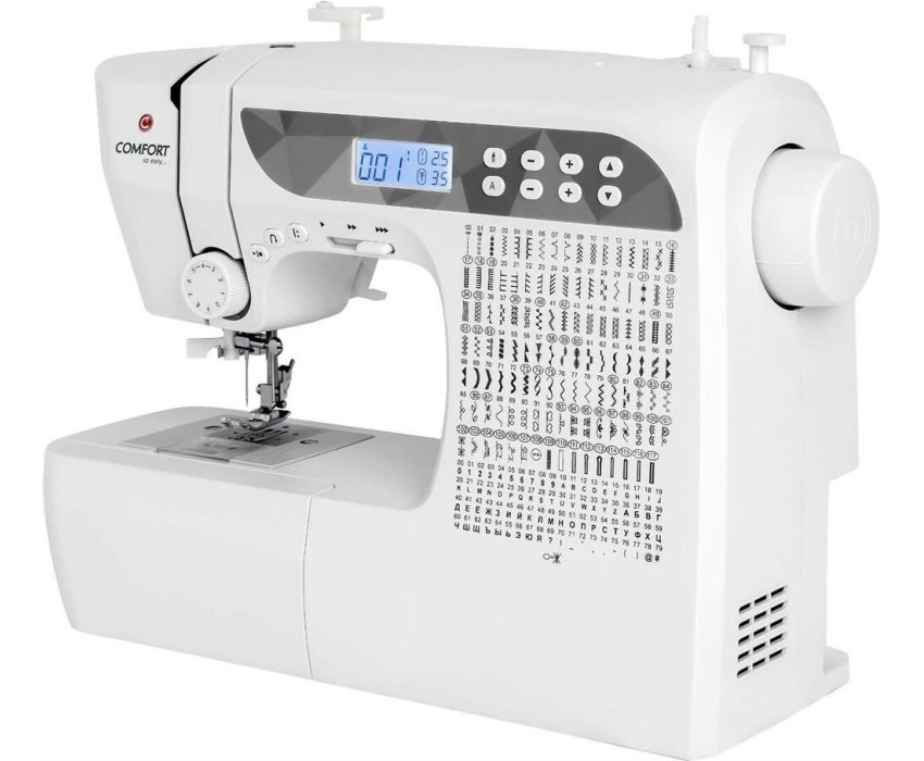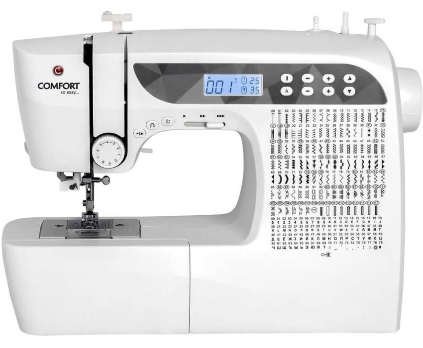 200 операций, 9 видов петель, жк дисплей, нитевдеватель , горизонтальный челнок, русск./англ. алфавит, плавная регулировка скорости на корпусе, регулятор давления лапки, нитевдеватель, возможность шитья двойной иглой, возможность шитья без педали.