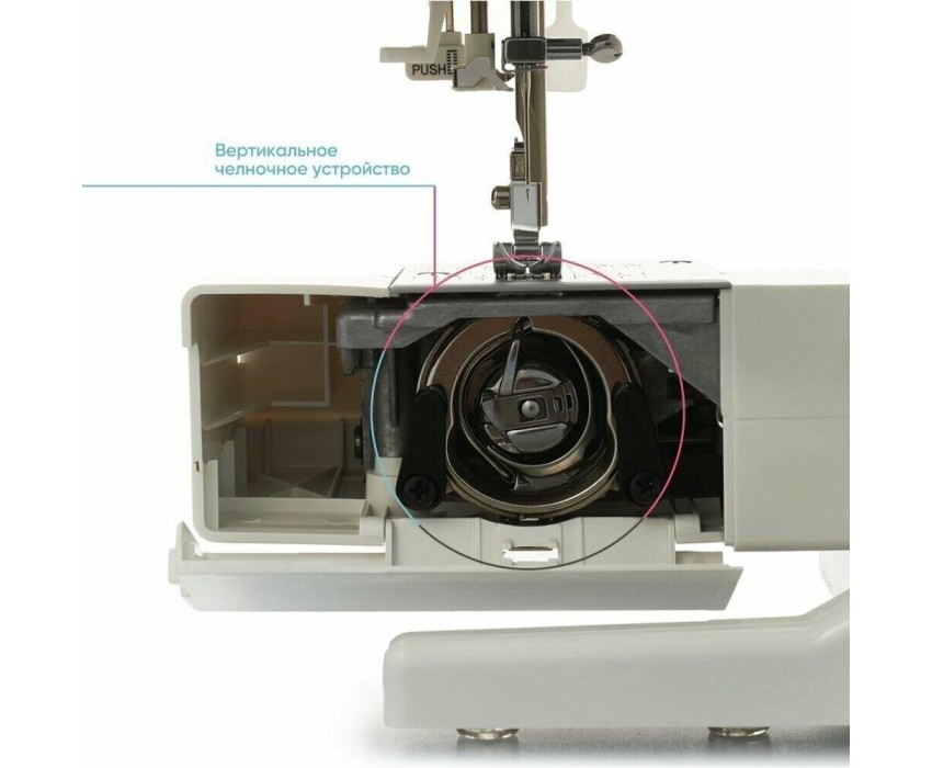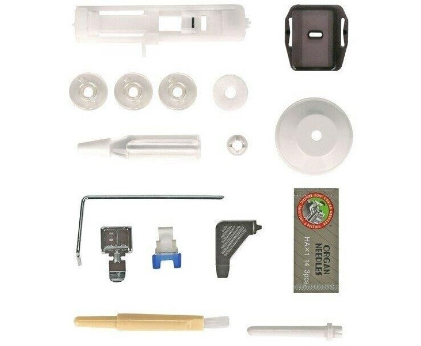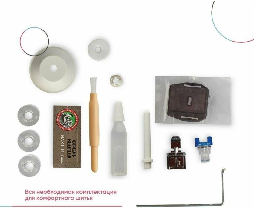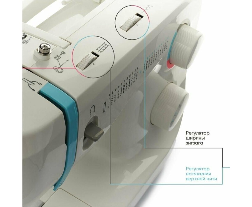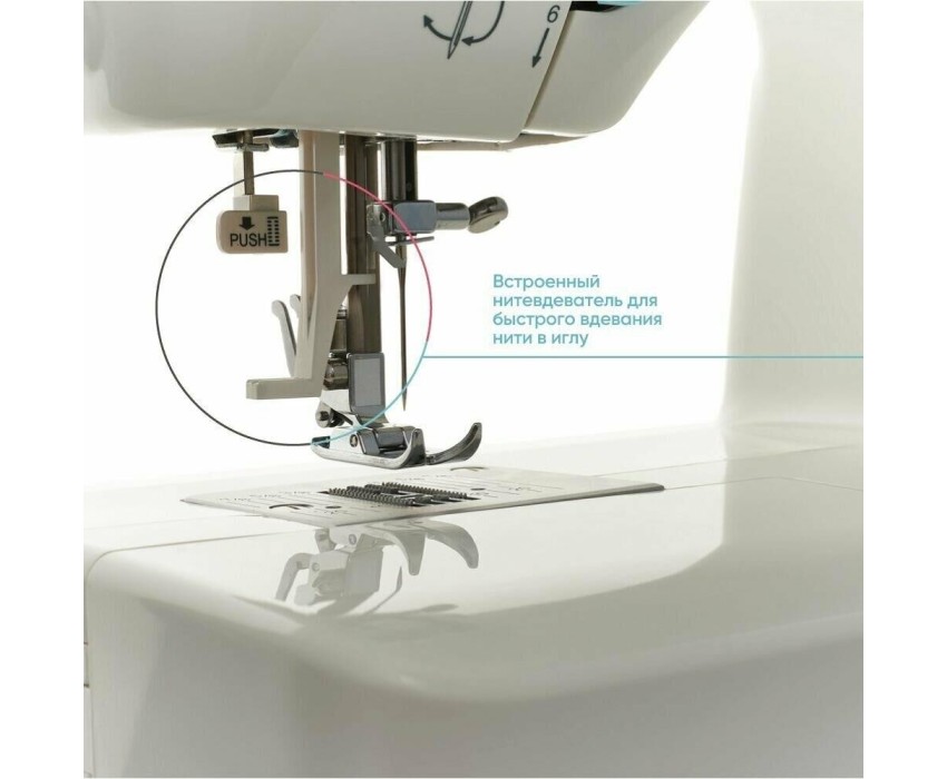 23 операции: прямая строчка, зигзаг, потайные строчки, декоративные строчки, трикотажные строчки, оверлочные строчки, строчки для квилтинга, петля-авт.; вертик. челнок; съёмная рукавная панель; нитевдеватель; регулятор ширины зигзага; мягкий чехол