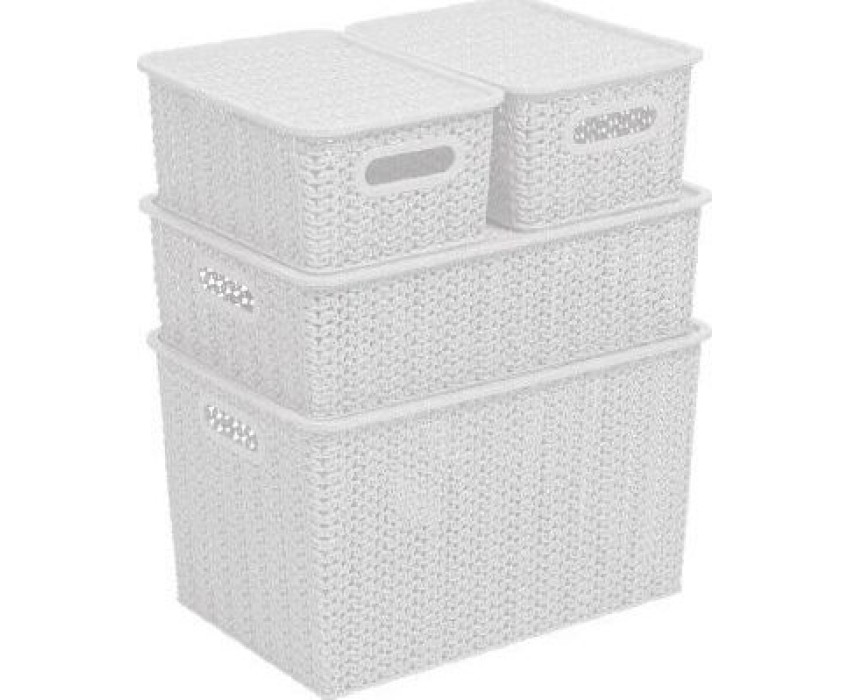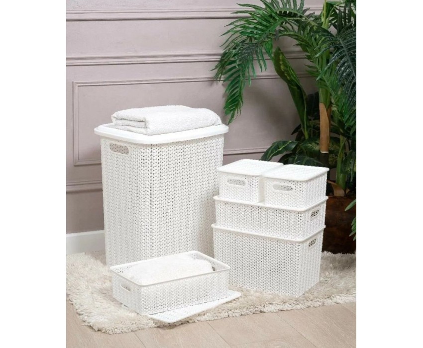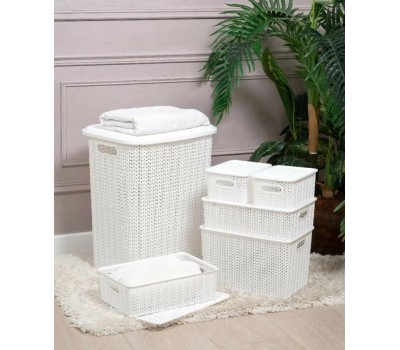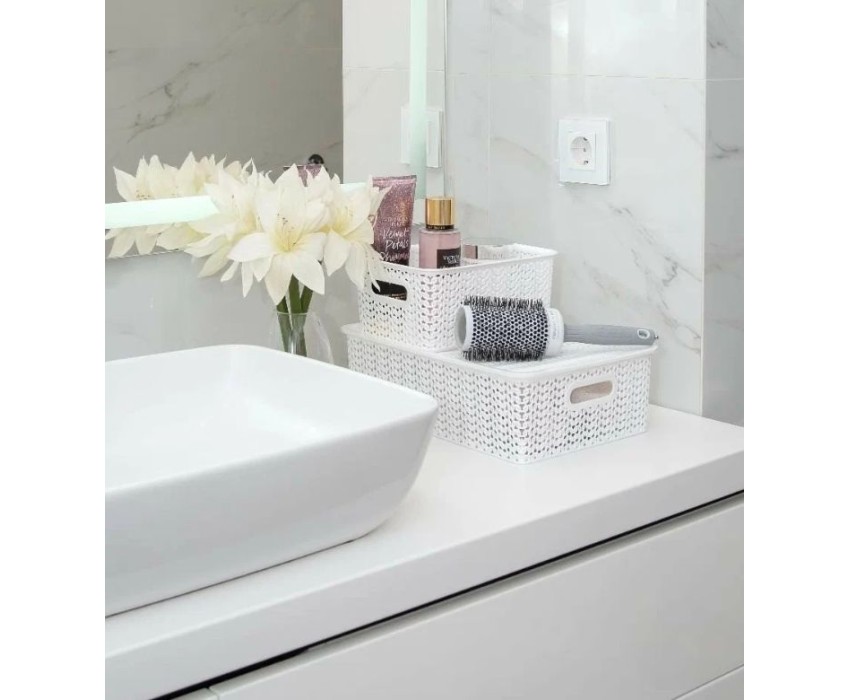 Корзина для хранения VIOLET Вязь 7,5л с крышкой белая 532106