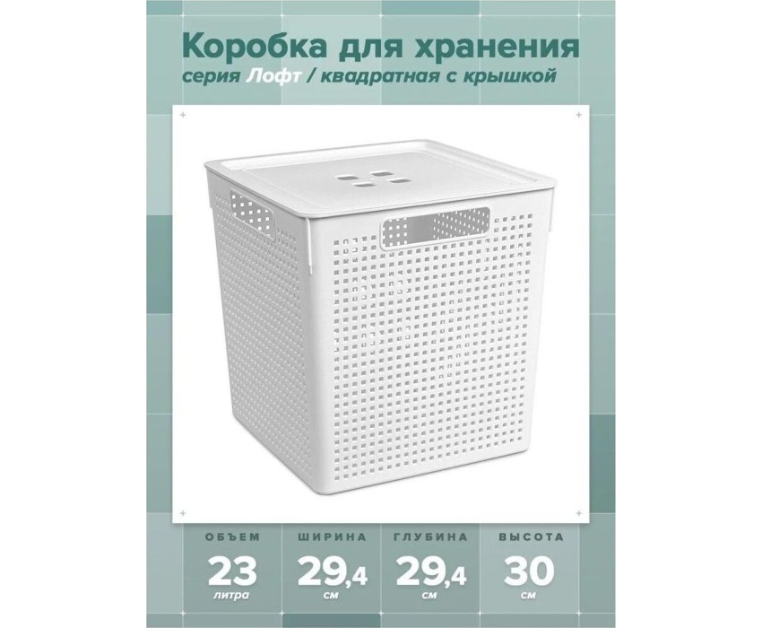 Коробка для хранения квадратная "Лофт" с крышкой 23л 294х294х301 (белый)