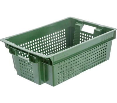 Ящик ТАРА.РУ 102 МСК зеленый полимерный 600х400х200 перфорированный (28418)