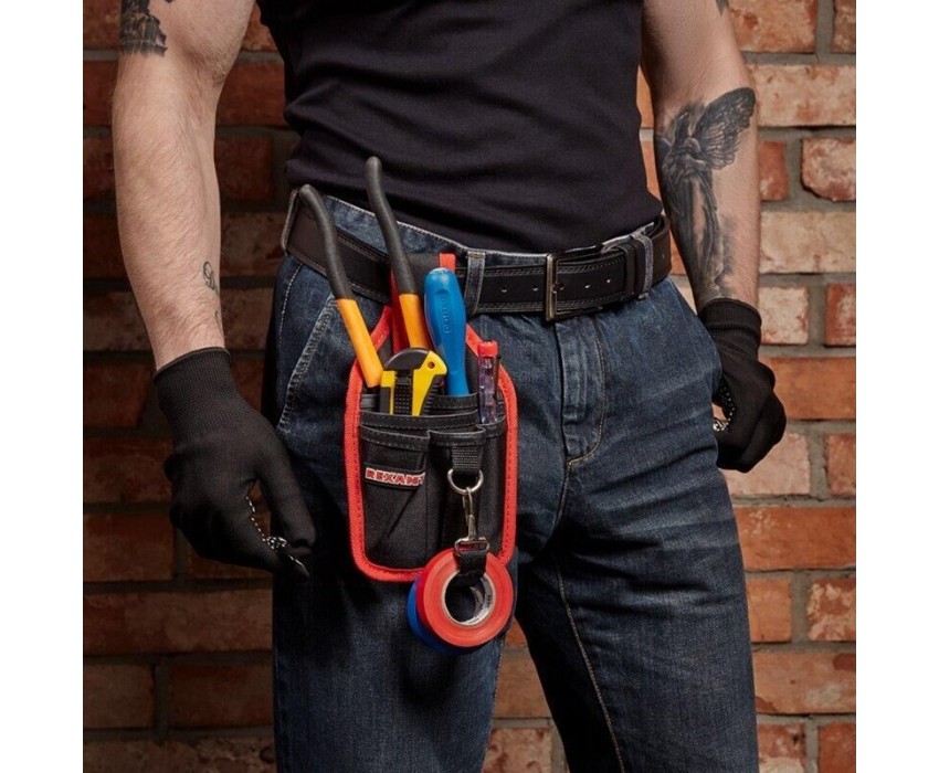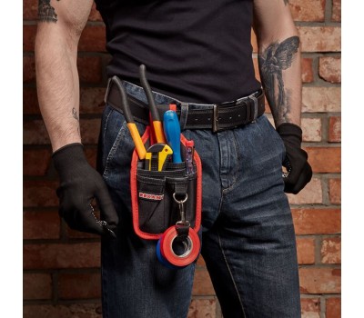 Поясная съемная сумка монтажника REXANT RE-CH предназначена для удобного хранения инструментов. Оснащена 5 отделениями и карабином для фиксации мелких инструментов и деталей, например, изоленты, проволоки, кабеля. Сумка оптимально подходит для работ на высоте, позволяет оставлять руки свободными. Крепится на любой ремень с помощью манжеты с надежной металлической кнопкой. Сумка выполнена из прочного влагонепроницаемого материала: содержимое надежно защищено от механических воздействий и загрязнений. Характеристики: Размеры: 24,5х1,5х14 см Количество отделений: 5 шт. Материал: ткань «Оксфорд» 600D PVC PU, сталь Преимущества: Выполнена из прочных долговечных материалов Влагозащищенный материал Металлические части изготовлены из коррозиестойкого металла Металлические заклепки в местах наивысшей нагрузки обеспечивают долгий срок службы