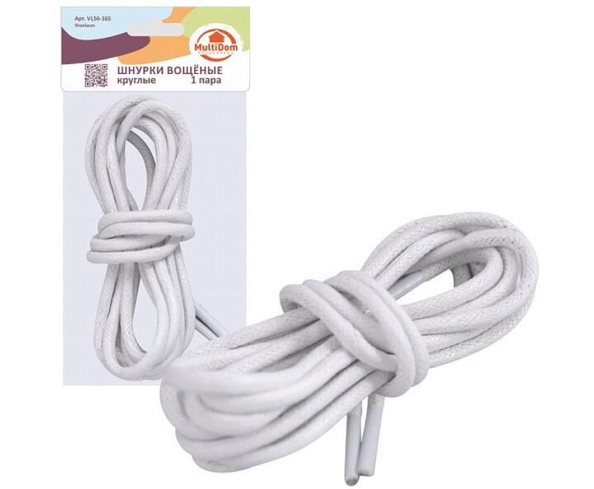 MULTIDOM Шнурки вощеные круглые. Длина 120 см, 1 пара (белые) VL56-165