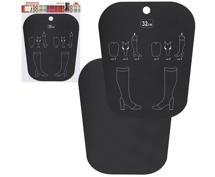Формодержатели предназначены для удерживания голенища сапог в вертикальном положении. Такой способ хранения, способствует сохранению аккуратного вида обуви. Формодержатель из качественного полипропилена, очень прост в использовании, просто согните его края и вставьте в голенище обуви, формодержатель тут-же расправится и примет его форму. Формодержатели помогут организовать пространство в вашей прихожей или гардеробе и обеспечат лучшую сохранность вашей обуви. Благодаря имеющемуся отверстию, их можно подвесить на любой крючок для хранения. Изготовлено: пластмасса (полипропилен). Размер: 32х26 см.