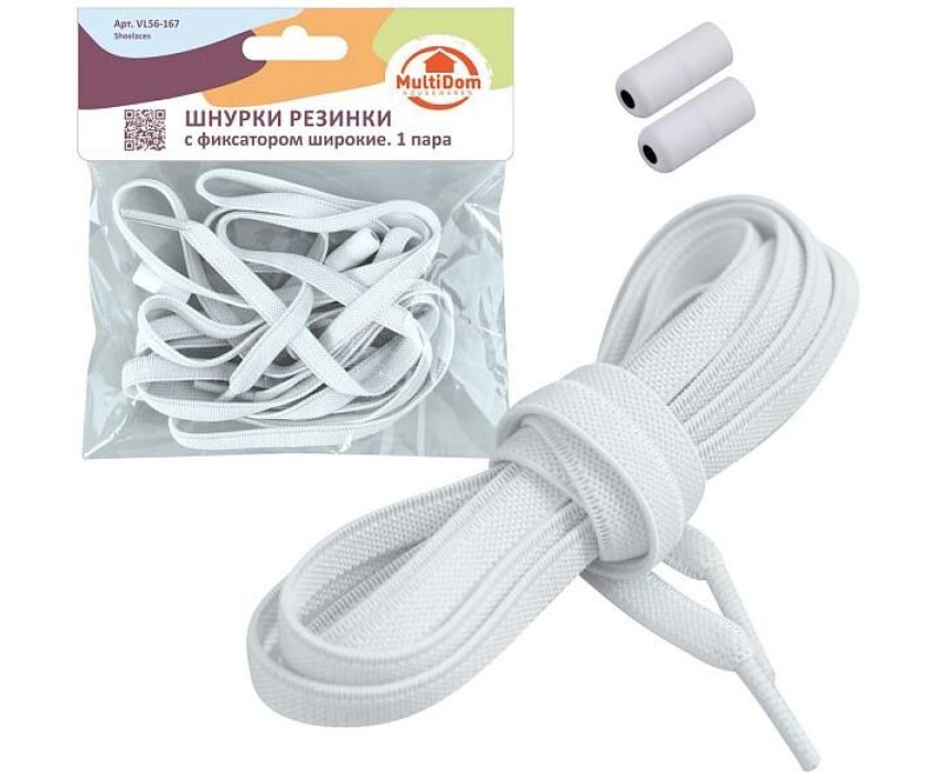 MULTIDOM Шнурки резинки с фиксатором широкие. Длина 100 см, 1 пара (белые) VL56-167