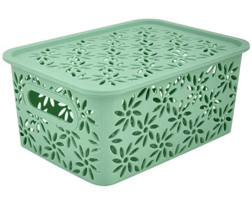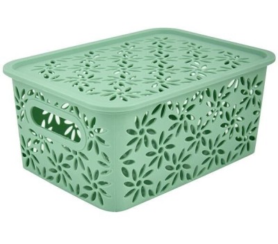 MULTIDOM Корзинка "Ромашки" 3л с крышкой (нефрит) 23,5х17,3х10,5 см 511 146