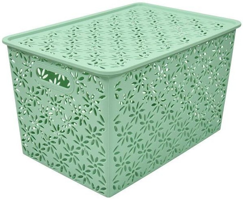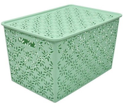 MULTIDOM Корзинка "Ромашки" 14л с крышкой (нефрит) 35х24,5х20,5 см 513 146