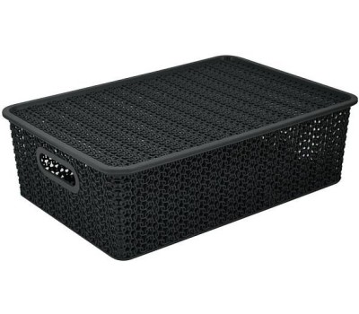 MULTIDOM Корзинка "Вязь" 7,5л с крышкой (серый) 35х24,5х10,5 см 532 118