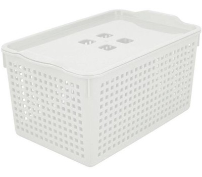 Корзинка для хранения - незаменимый помощник в каждом доме. Её можно использовать для хранения пищевых продуктов, хозяйственных товаров, канцелярских принадлежностей, средств личной гигиены, детских игрушек, а также косметики и любых аксессуаров. Корзинку можно разместить на кухне, в ванной, прихожей, спальне, детской комнате, на балконе, в гараже, кладовке и других помещениях. Её можно поставить в шкаф или на тумбочку. Ручки на боковых стенках корзинки помогают легко перемещать её в любое место. Перфорация на стенках контейнера способствует циркуляции воздуха, благодаря чему в нём не скапливается влага, а находящиеся в нём вещи вентилируются. Лаконичный дизайн отлично впишется в любой интерьер. Перед первым использованием и по мере загрязнения промыть в проточной воде с использованием жидких моющих средств. Изготовлено: пластмасса (полипропилен). Размер 29,5х18,5х14,5 см. Объём 5,3 л.