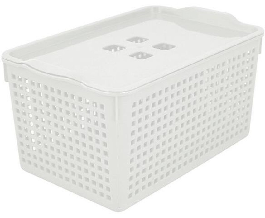 MULTIDOM Корзинка "Лофт" с крышкой (белый). Размер 29,5х18,5х14,5 см. Объём 5,3 л. 644 106