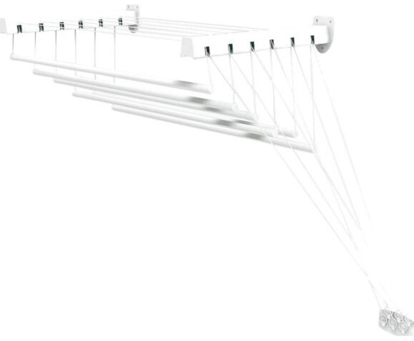 (ВхДхШ)135х180х46см.Материал: сталь, пластмасса, текстиль.Длина стержня: 1,8 м.Максимальный вес (белья): 12 кг.Длина кронштейна: 43 см.Цвет белый.