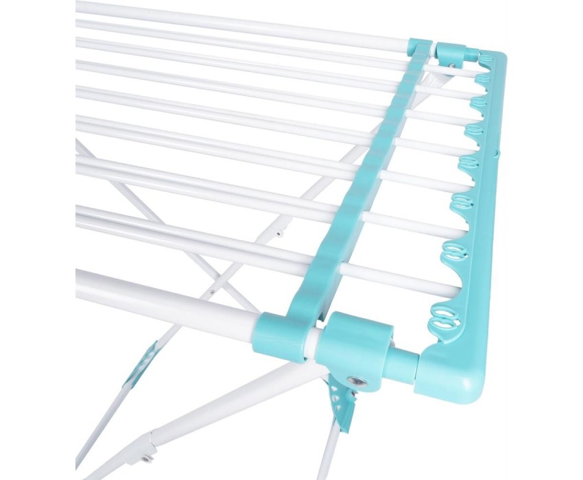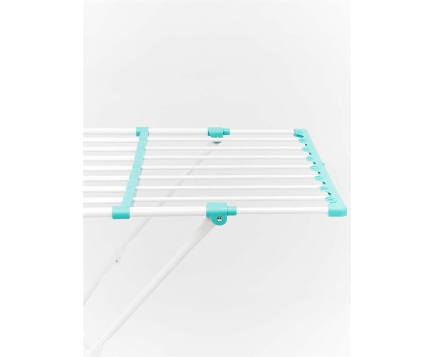 Напольная сушилка для белья AURA Deluxe X это практичное решение для сушки белья дома. Конструктивная особенность сушилки позволяет установить подходящую длину прутьев с помощью телескопического сдвижения. Колесные опоры обеспечивают легкое передвижение сушилки по дому. Диаметр металлических прутьев позволяет сушить белье без заломов. Качественное порошковое окрашивание металлических элементов конструкции защищает от образования ржавчины. Полезная длина для навески белья 20 метров. Цвет: белый; мятный Состав: металл, пластик, антикоррозийное покрытие Комплектация: сушилка для белья напольная -1шт. Ширина упаковки: 56 Высота упаковки: 95