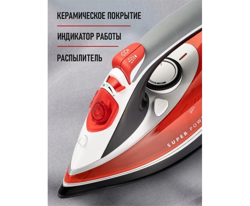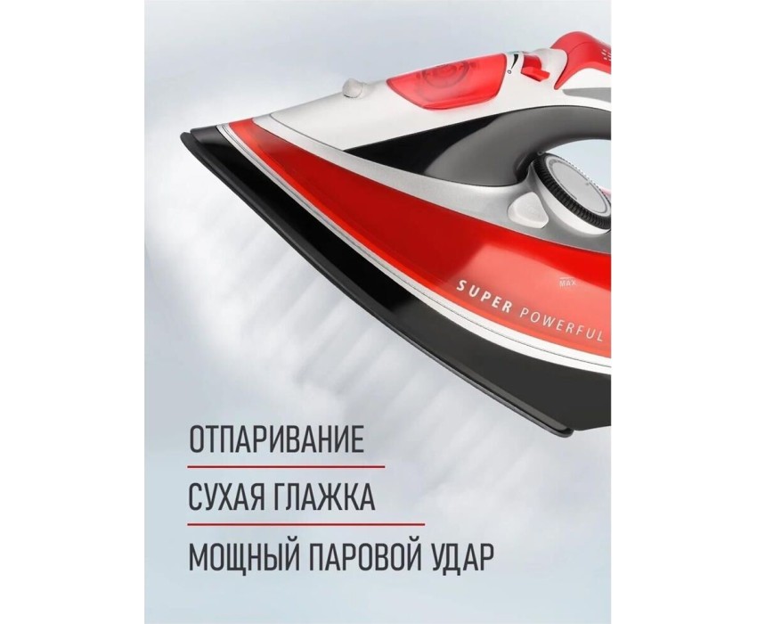 Мощность 3000 Вт. Защита «капля-стоп». Функция самоочистки. Функция распыления. Керамическая подошва. Защита от накипи. Мощный паровой удар. Вертикальное отпаривание. Стильный и яркий LED-индикатор. Емкость резервуара для воды 380 мл. Длина шнура 1.8 м.