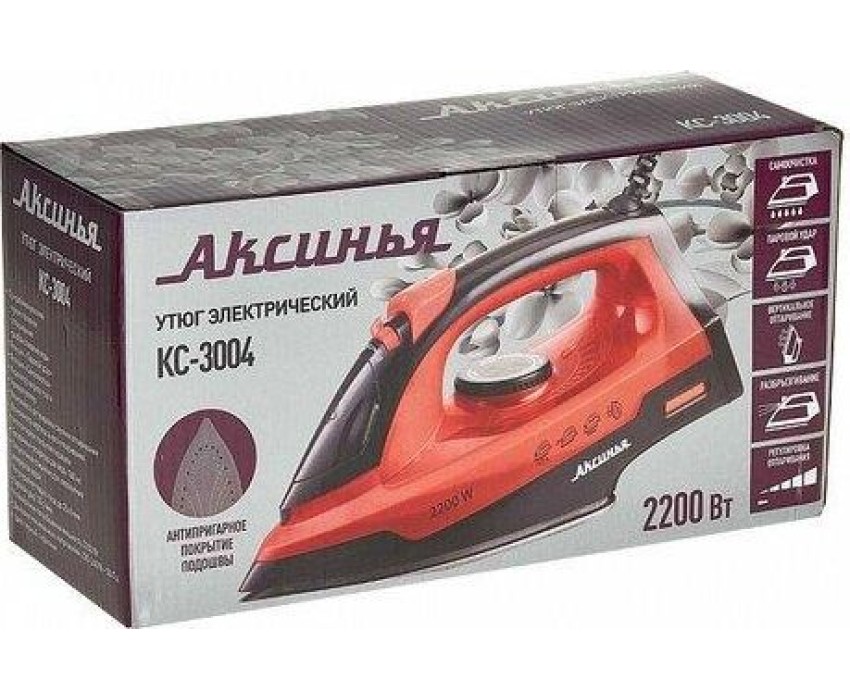 Утюг АКСИНЬЯ КС-3004 черный с красным