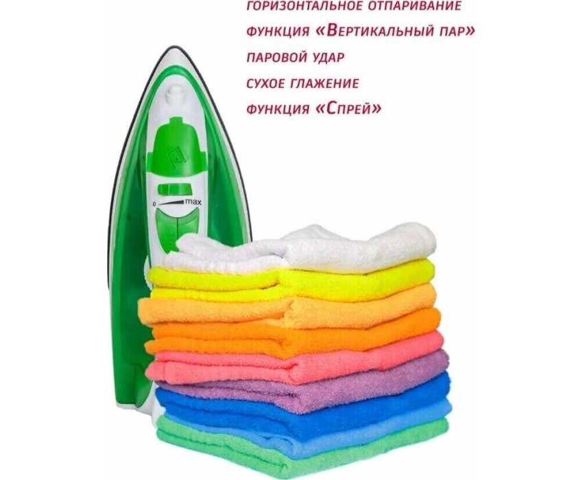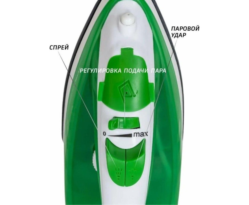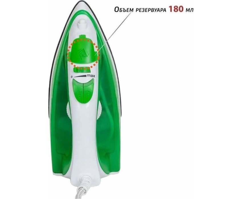 Тип устройства утюг паровой. Покрытие подошвы керамическое. Объем резервуара для воды, мл 180. Шаровое крепление сетевого кабеля есть. Постоянный пар, г/мин 14. Паровой удар, г/мин 80. Материал корпуса пластик. Цвет белый с зеленым. Энергопотребление. Потребляемая мощность, Вт. 1800. Электропитание, в., Гц. 220-240, 50-60.