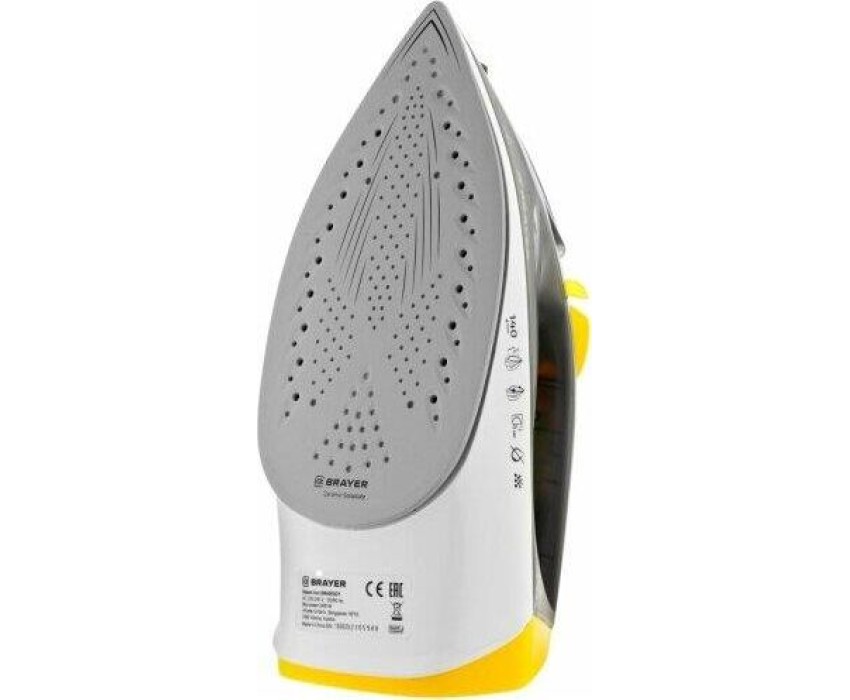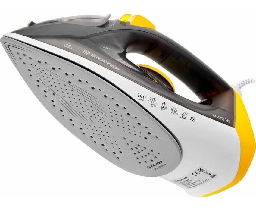 4003BR-GY Утюг BRAYER, 2400 Вт, керамич, пар 140 г/мин, антикапля, разбрызг, 330 мл Максимальная мощность 2400 Вт Керамическое покрытие подошвы, обеспечивающее легкое скольжение по ткани Постоянная подача пара 25 г /мин Максимальный паровой удар 140 г/мин Вертикальное отпаривание Автоматическое отключение Плавная регулировка температурных режимов Встроенная система защиты от накипи Функция "Антикапля" Функция самоотчистки Функция разбрызгивания Резервуар для воды емкостью 330 мл Длина шнура 1,9 м Электропитание: 230 В, 50-60 Гц