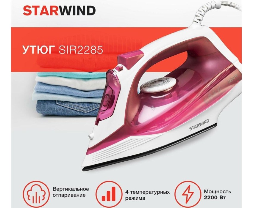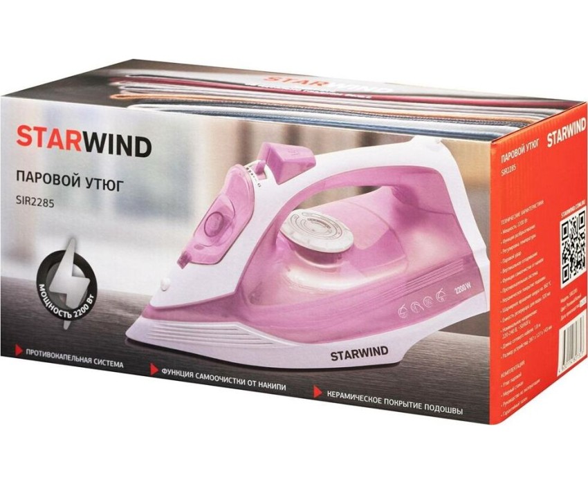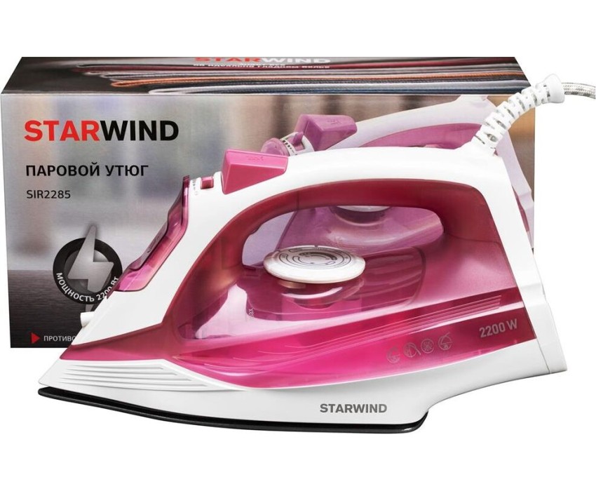 Мощность: 2200 Ватт Емкость для воды 320 мл Регулировка температуры Функция разбрызгивания Паровой удар Вертикальное отпаривание Функция самоочистки от накипи Противокапельная система Керамическое покрытие подошвы Шарнирное вращение шнура на 360 °С Длина сетевого шнура 1,8 м