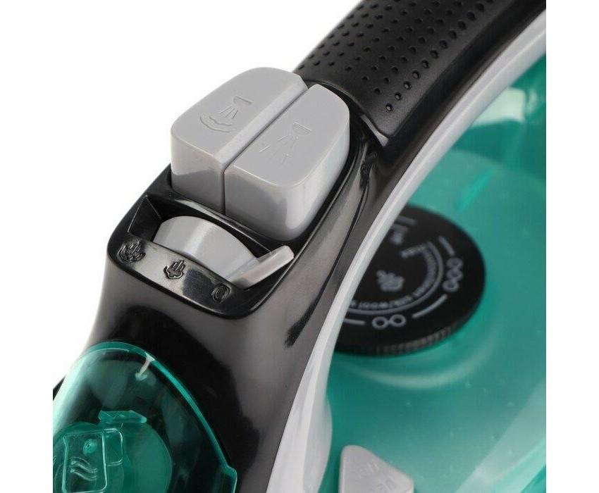 2200-2400Вт, резервуар д/воды 320 мл, подошва керамика (213х118 мм), регулируемый термостат, функции анти-капля и анти-накипь, распылитель воды, регулятор интенсивности пара, вертикал. отпаривание, паровой удар, автоочистка, мерн. стакан, внешняя длина шнура питания 1,65 м (общ.длина 1,8 м).